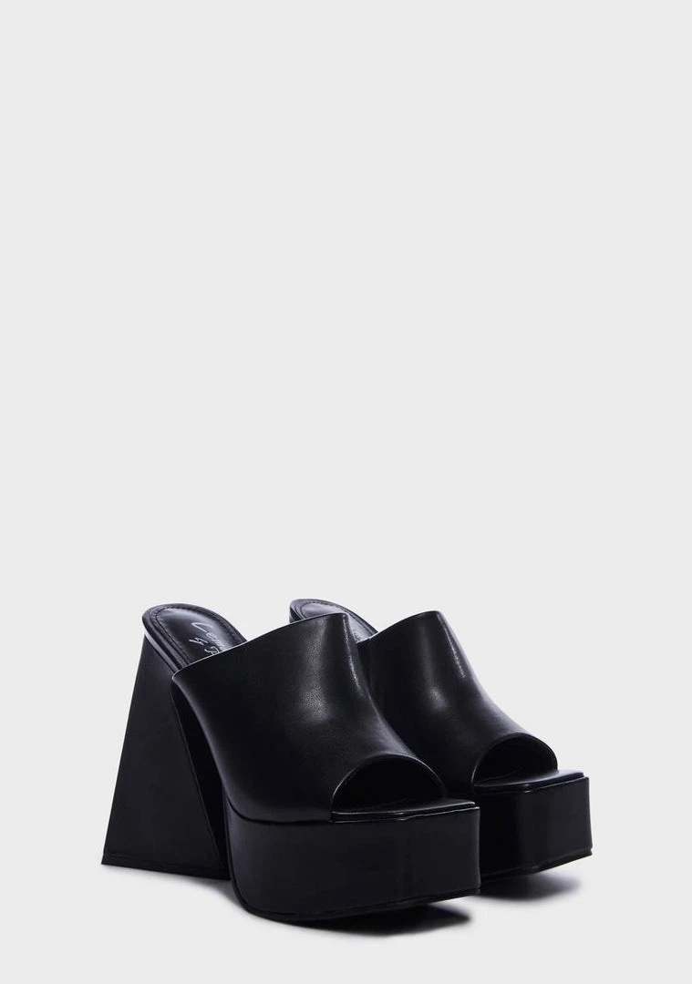 cuz be the best of the best. These heels have a vegan leather construction, polyurethane foam insoles, platform soles, block heels, a peep toe design, and a slip on fit.