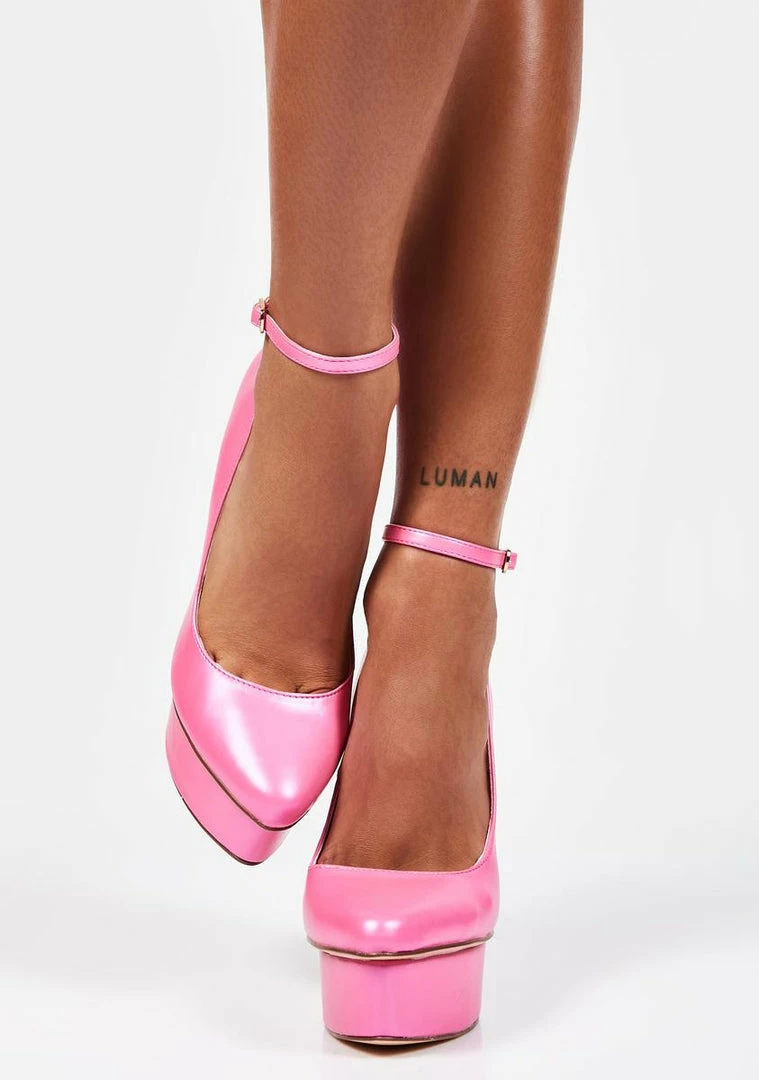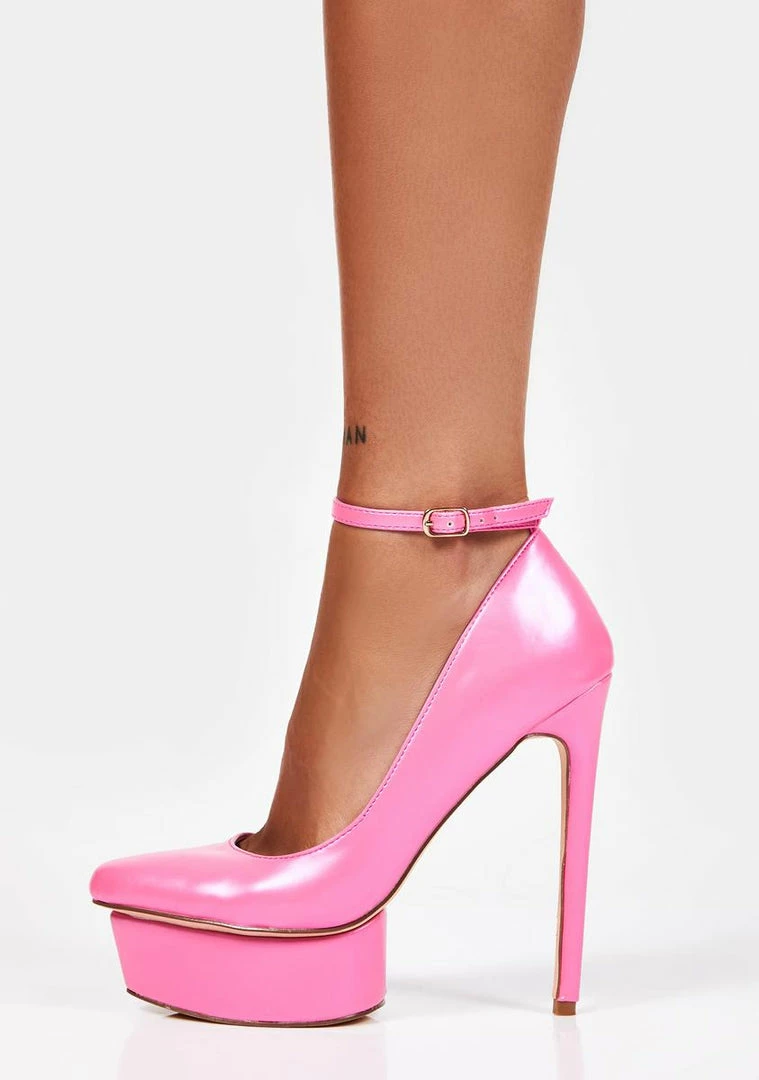 cuz you can never have too many shoes. These sexy stiletto heels have a vegan leather construction and ankle buckle closures.