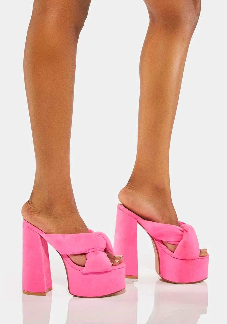 you look good enough to eat! These heels have a vegan suede construction, crisscross strap uppers with peep toes, platform soles, and block heels.