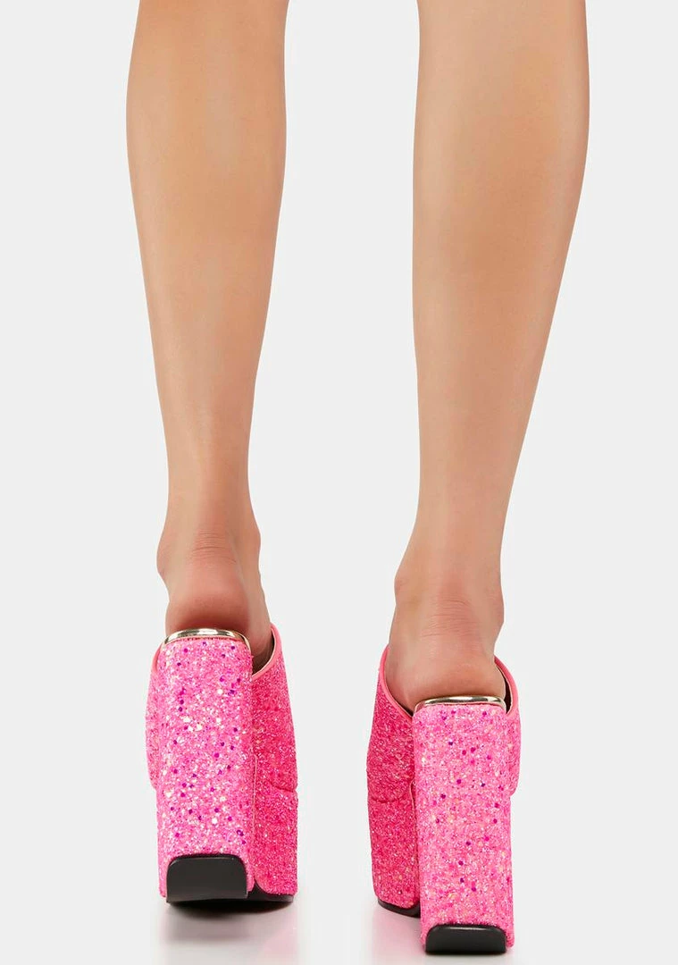 cuz it’s time to show it off! Look glam with these glitter wedge heels that have a square toe design, vegan leather uppers, man made soles, and a slip on fit.